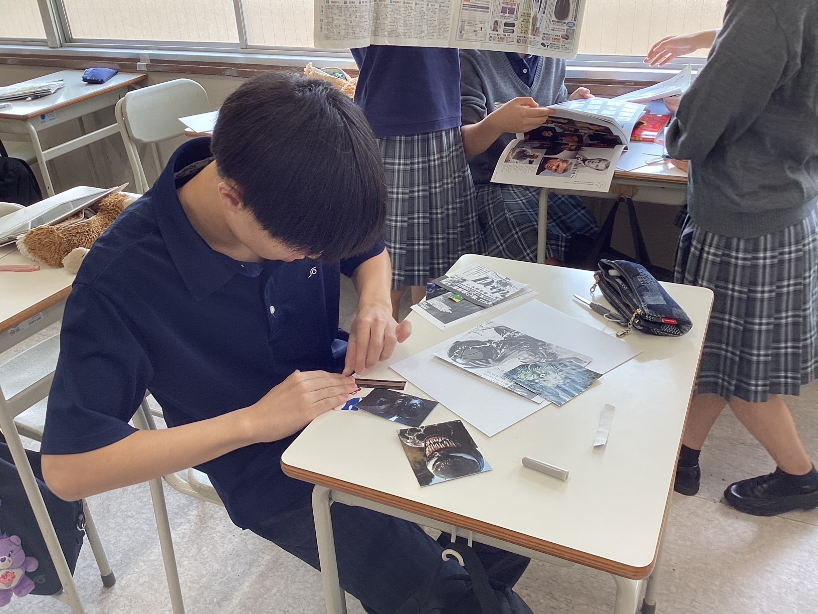 レクチャーで発想法を学んだ後、生徒たちは思い思いの素材を使って自分自身の内なる『想い』を表現するコラージュアートに挑戦。
