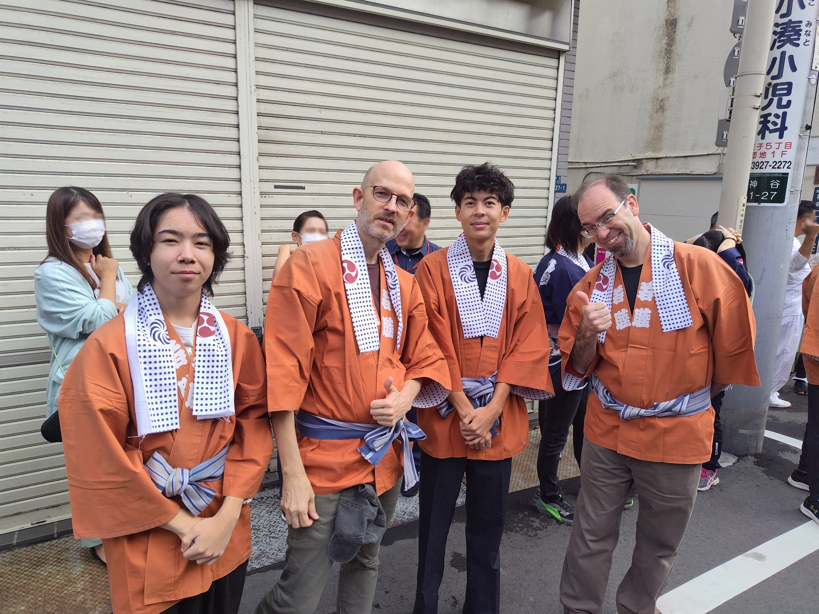 実際には、ほとんどの教員が御神輿を担いだことがないようです。留学生も半纏を着ながら日本の文化を肌で学んでいるようです。今回のルートは、神谷一丁目から始まり、柏木神社で宮入、宮出を経て、神谷一丁目まで戻ってきます。