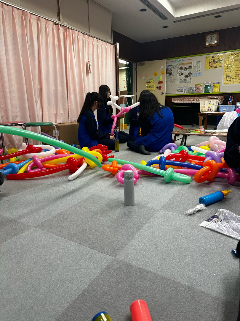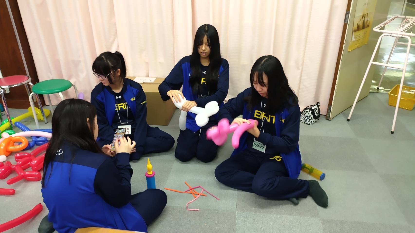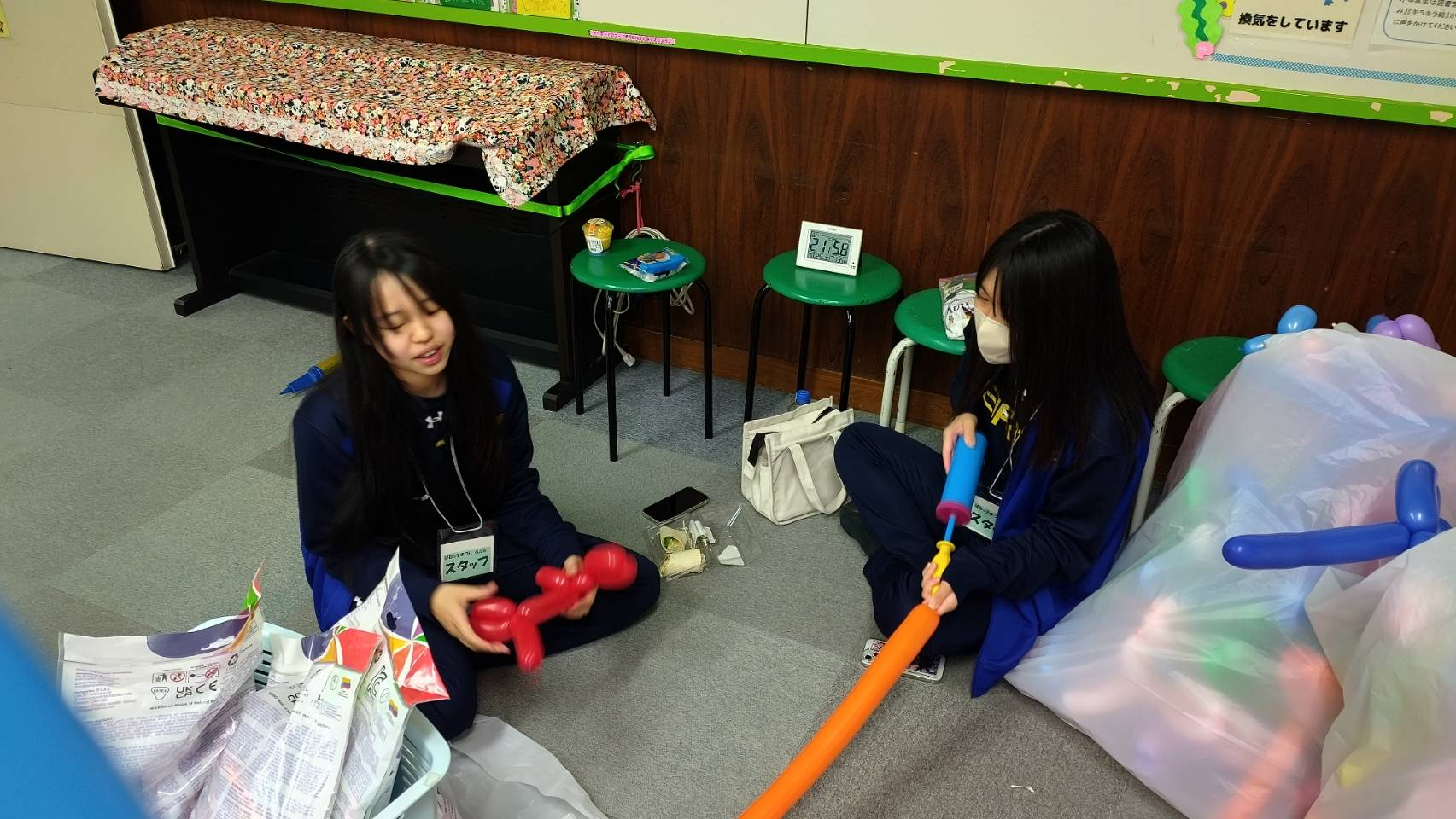 バルーンアートは、成立学園の近くにキャンパスを構える東洋大学のバルーンアートサークルの学生さんたちと協力して行い、