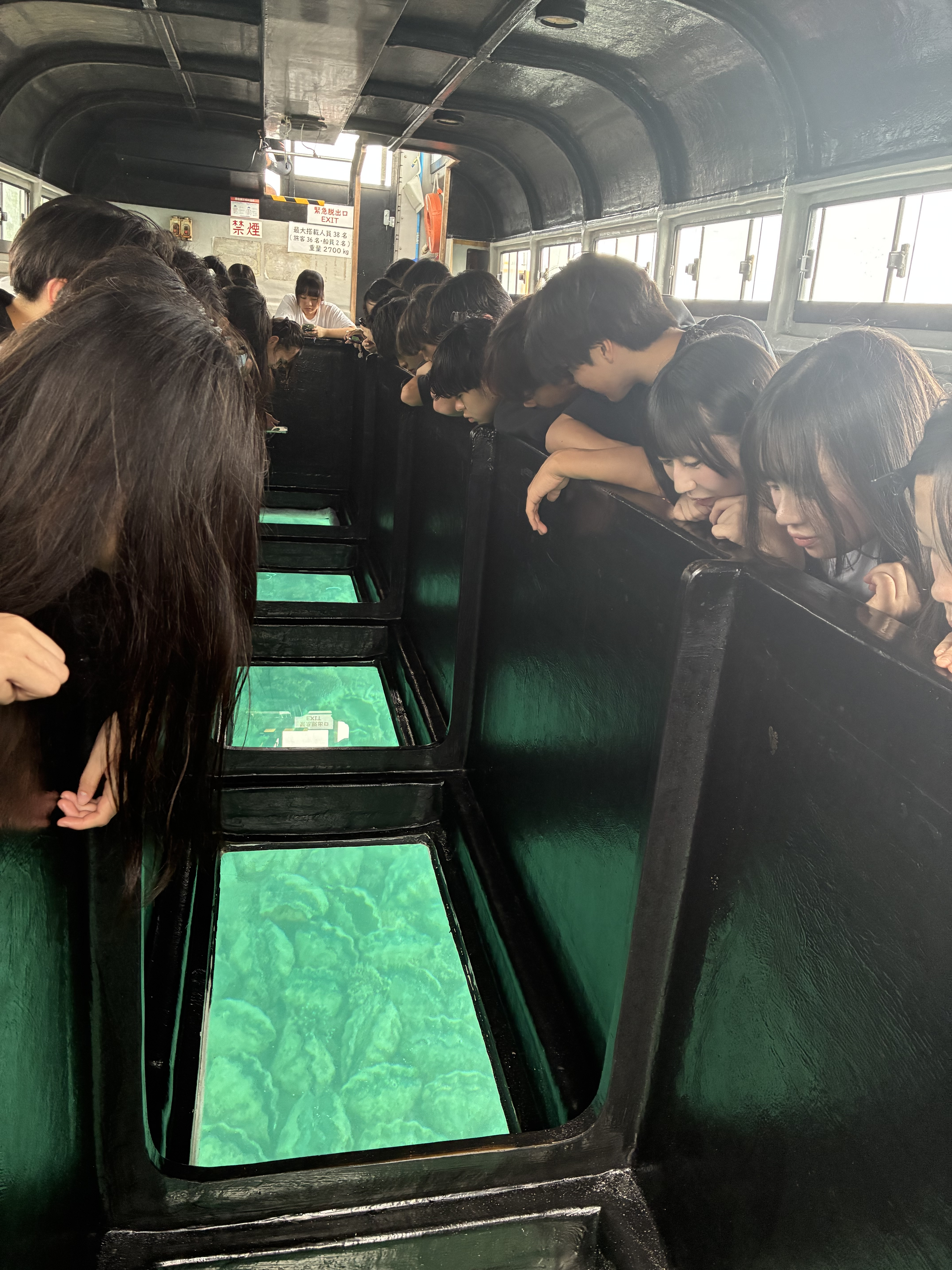 本日は天気にも恵まれ、川平湾のグラスボートに乗車しました。海の中には様々な生物がいました。1番生徒が驚いていたのは、海の透明度!なかなか東京にいては味わえるものではありません。