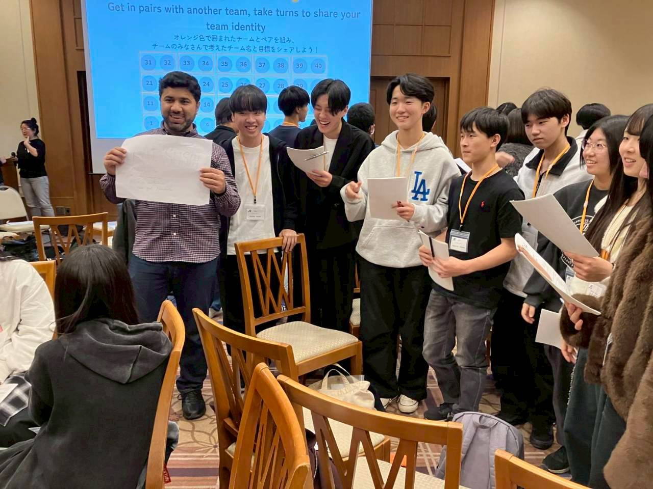 初日の今日は、チームビルディングを目的としたグループワークとして「英単語当てゲーム」や「シニアバディの紹介」を行いました。ゲームでは、英単語をジェスチャーやヒントを使って説明するなど、笑顔と笑い声が絶えない時間となりました。最初は緊張していた生徒たちも、活動を重ねるうちに打ち解け、英語で積極的に意見を伝え合う姿が見られました。