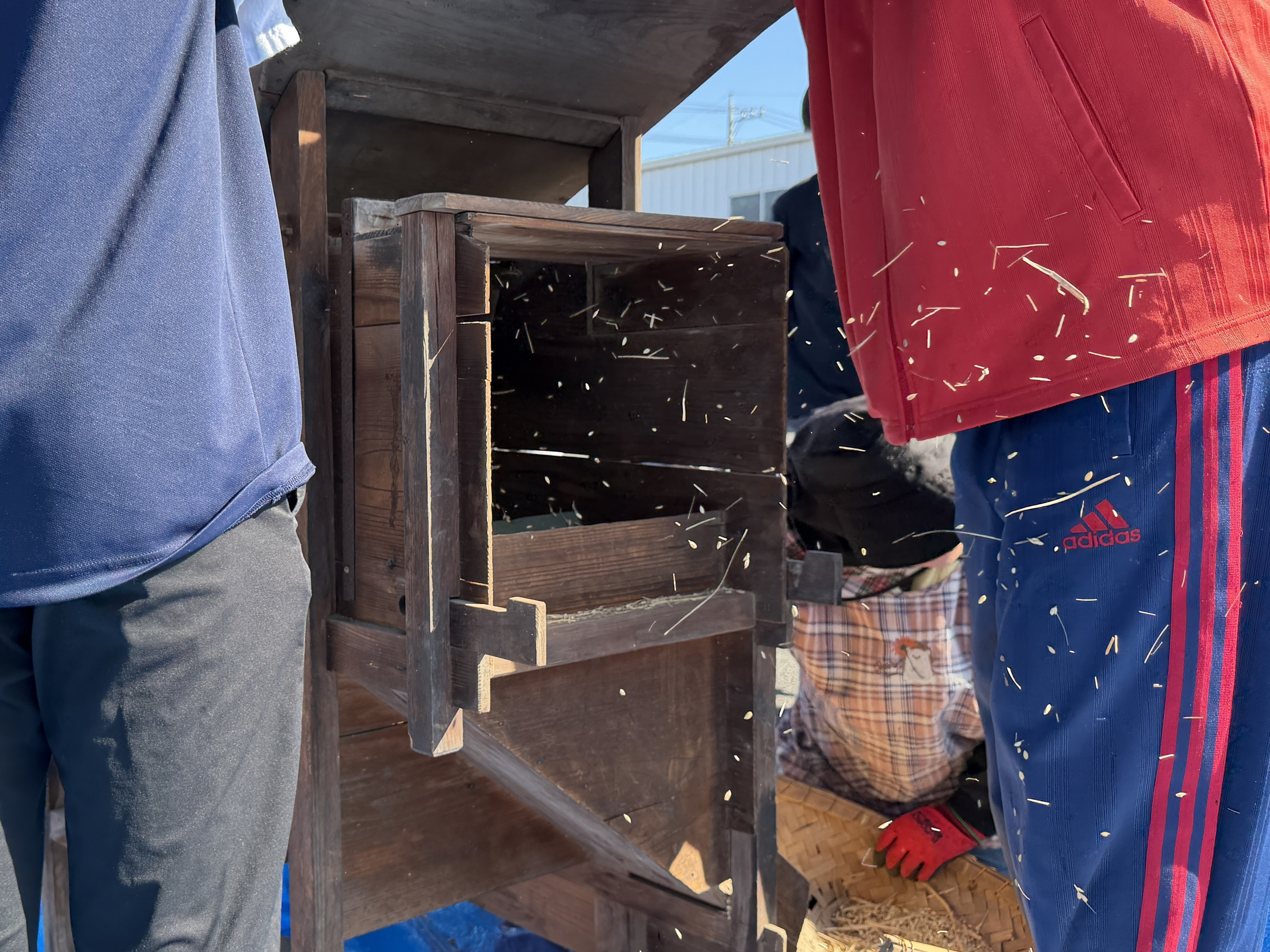 今では「コンバイン」という機械でやっている工程を、昔ながらの方法で体験しました。