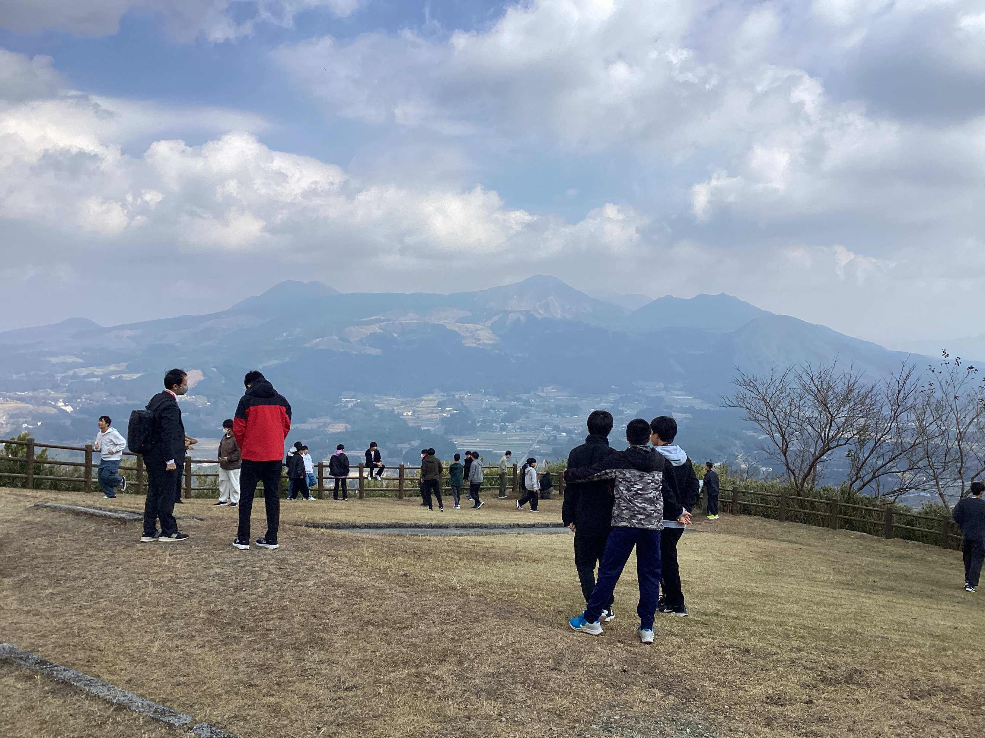 空港へ向かう途中に、俵山から阿蘇のカルデラ地形を一望。