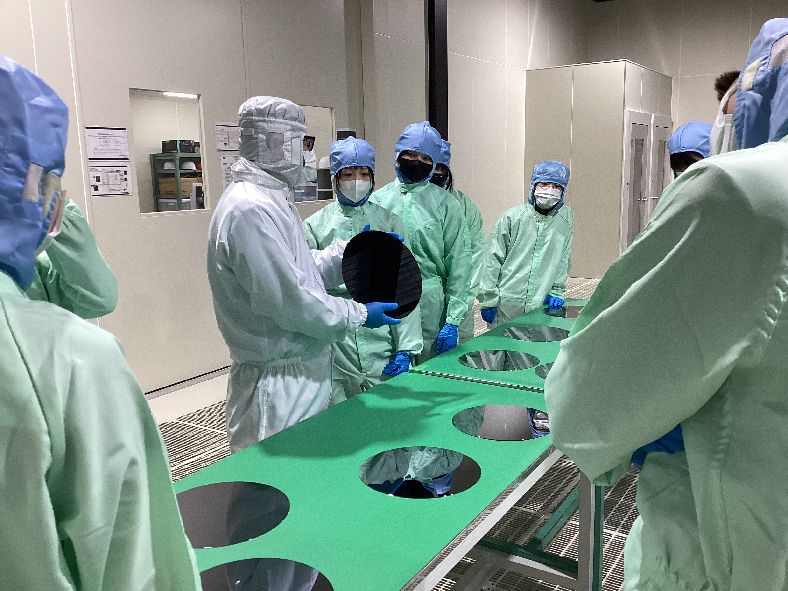 そして、防塵服を着用して、実際に材料のシリコンに触れてみたり、