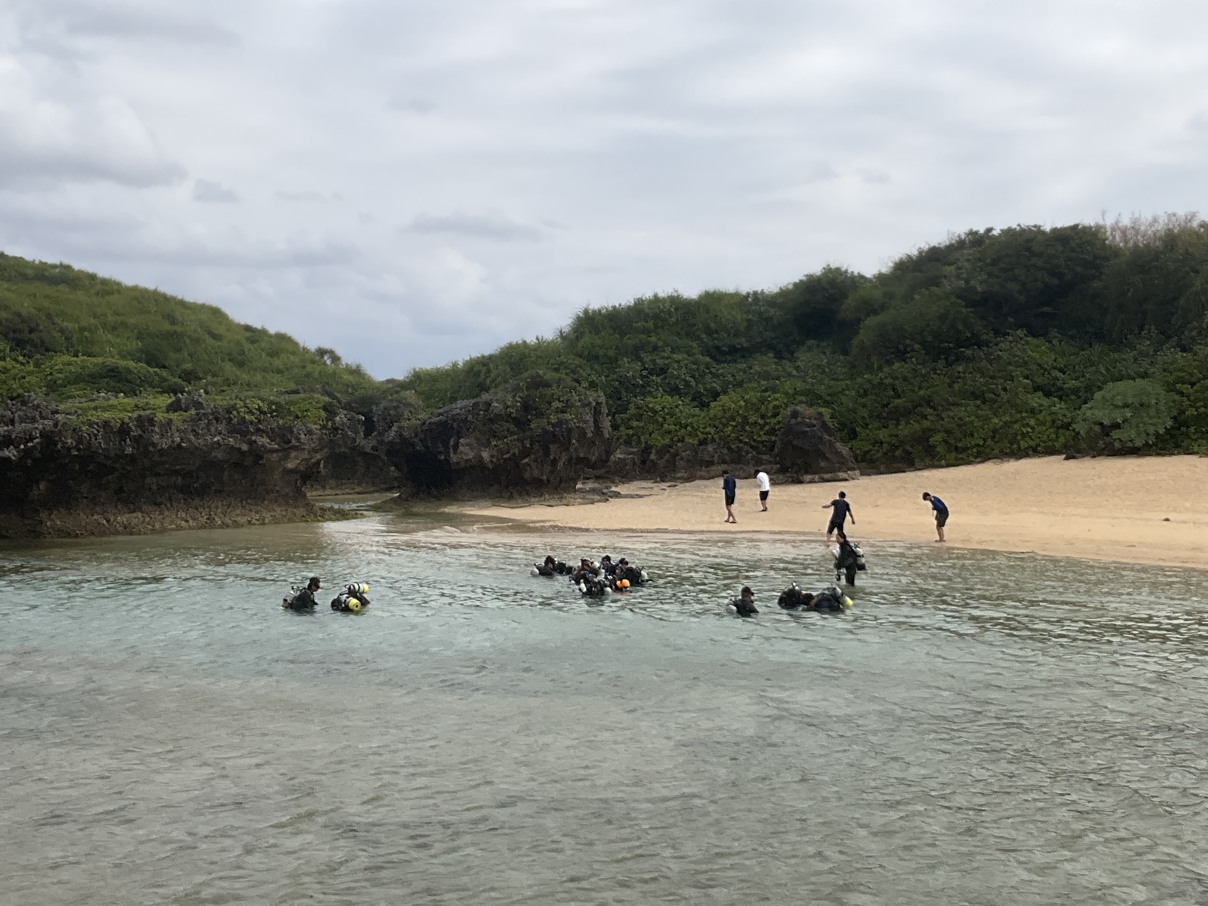 午前・午後の班に分かれ、さらにスクーバダイビングとシュノーケリングの班に分かれて体験を行いました。