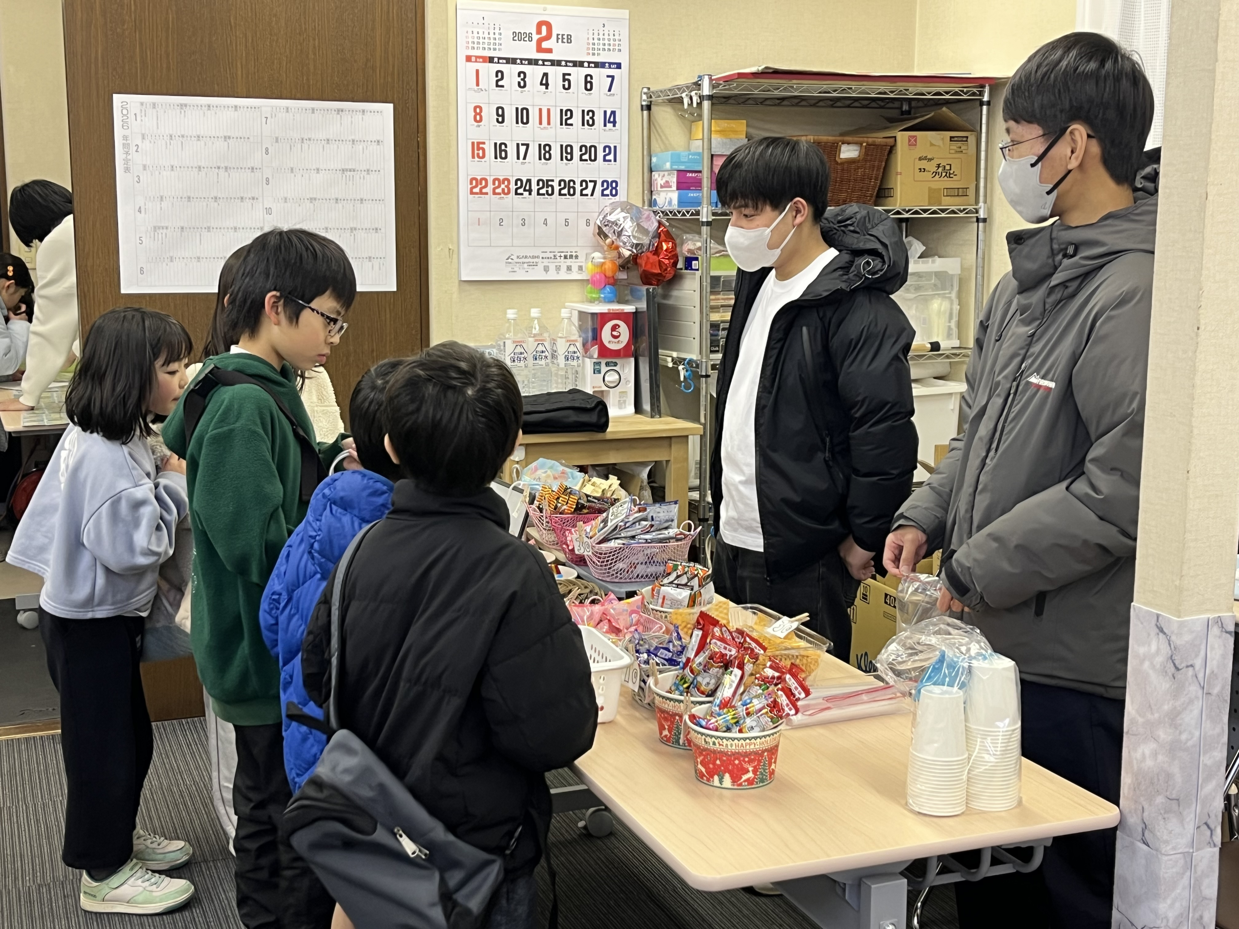 受付をして、子どもたちが100円になるように好きな駄菓子を選んでいきます。