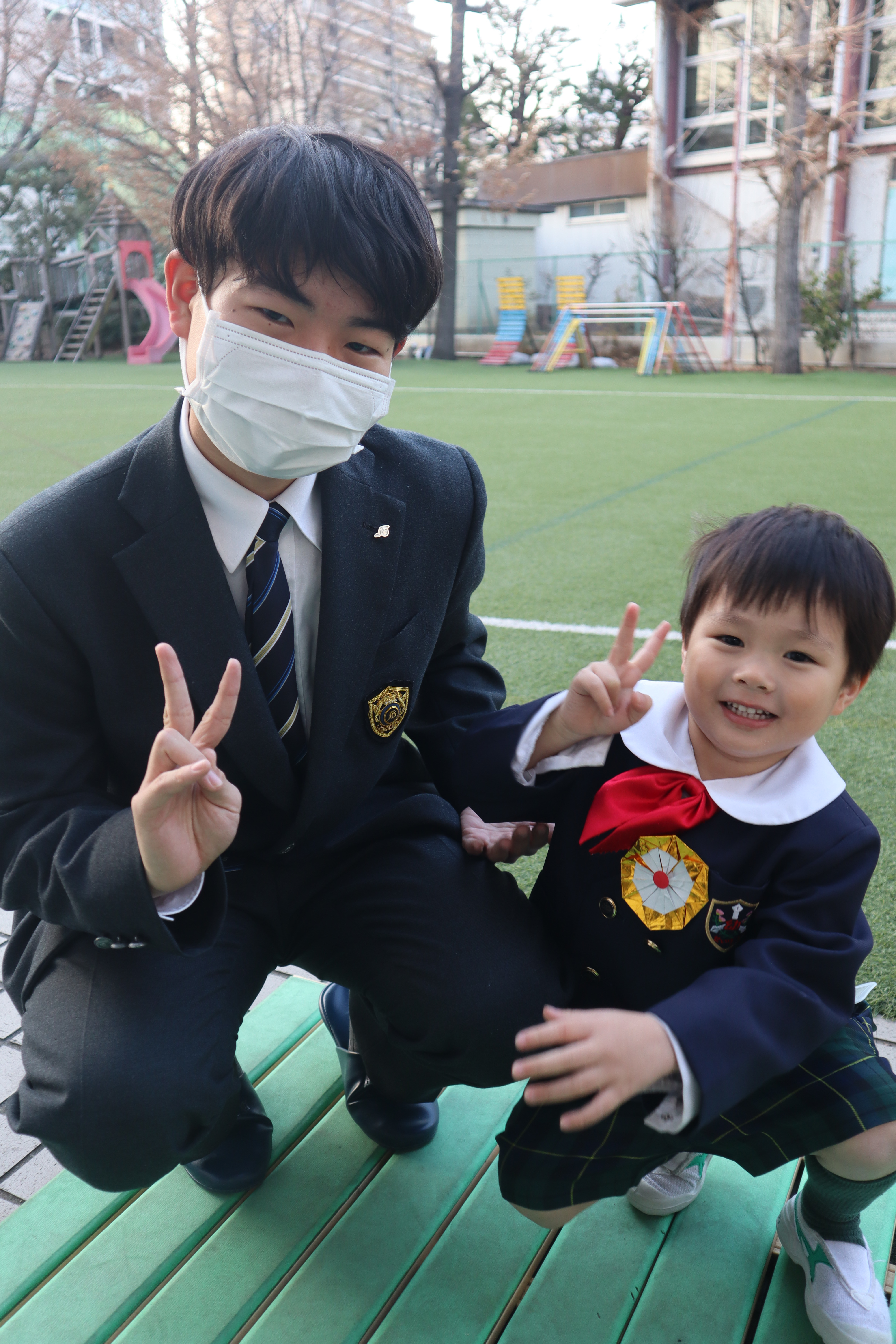 一番最後に、メダルを受賞した園児たち個々の記念撮影と、サポートした生徒たちとの写真を撮って今日の活動を終えました。