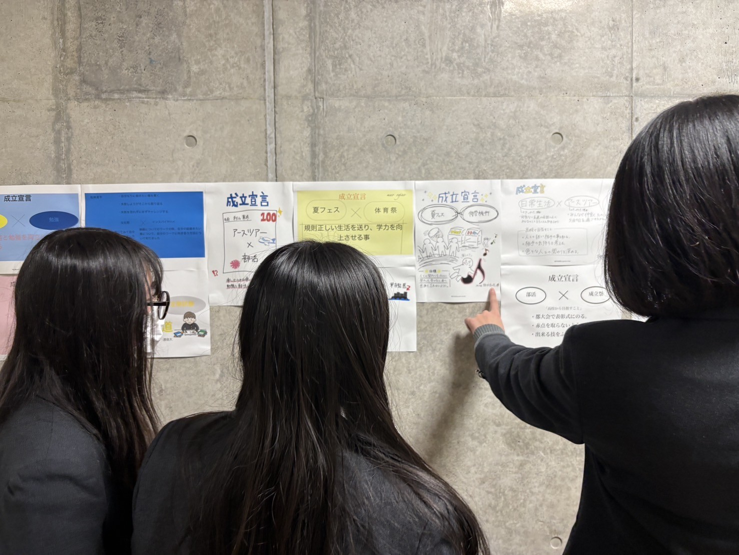 会場には、これから本格的な探究に入る中学3年生たちの『成立宣言』も掲示されました。