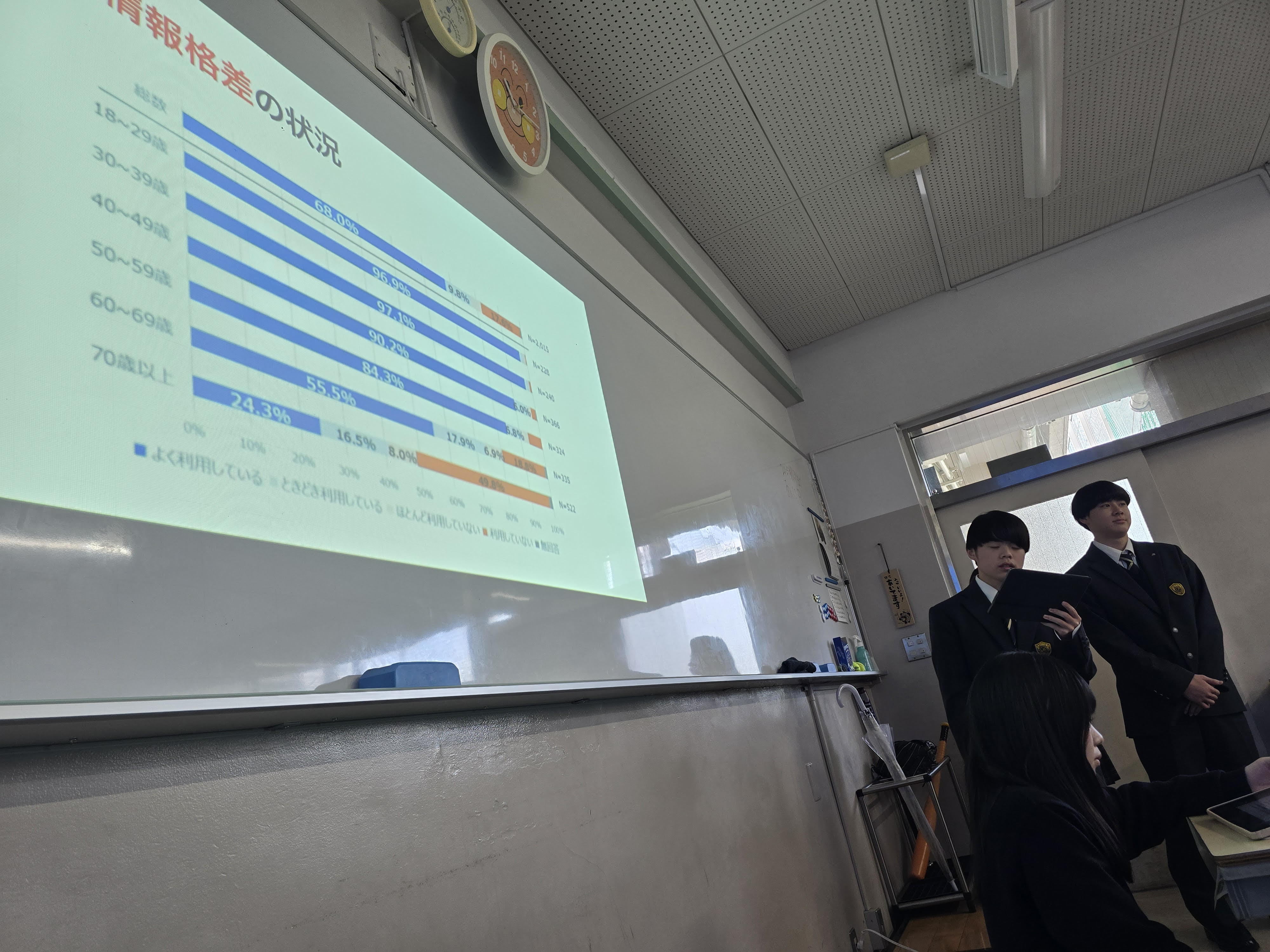 講義では、私たちの生活を支える通信インフラの使命とともに、企業が直面しているリアルな課題についても共有があり、生徒たちは真剣な表情で耳を傾けていました。