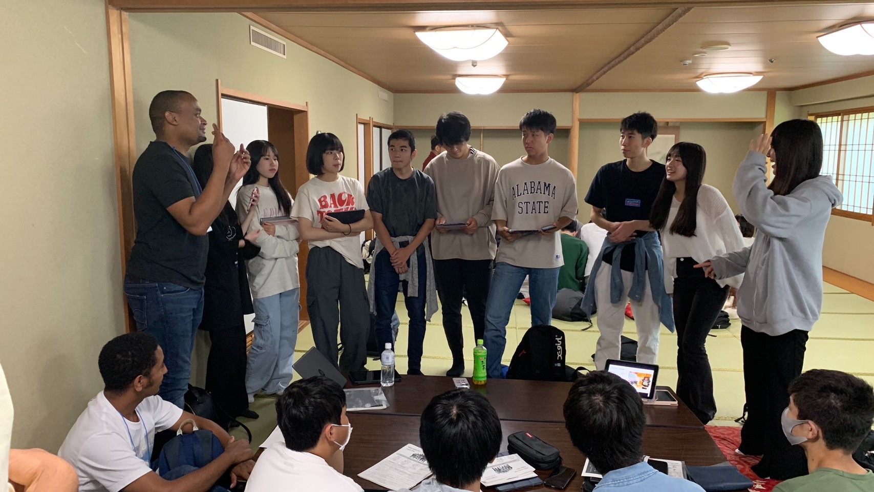 英語漬けだったこの3日間の成果を出せるようグローバルリーダーと一緒にプレゼンテーションに受けて発表しました。