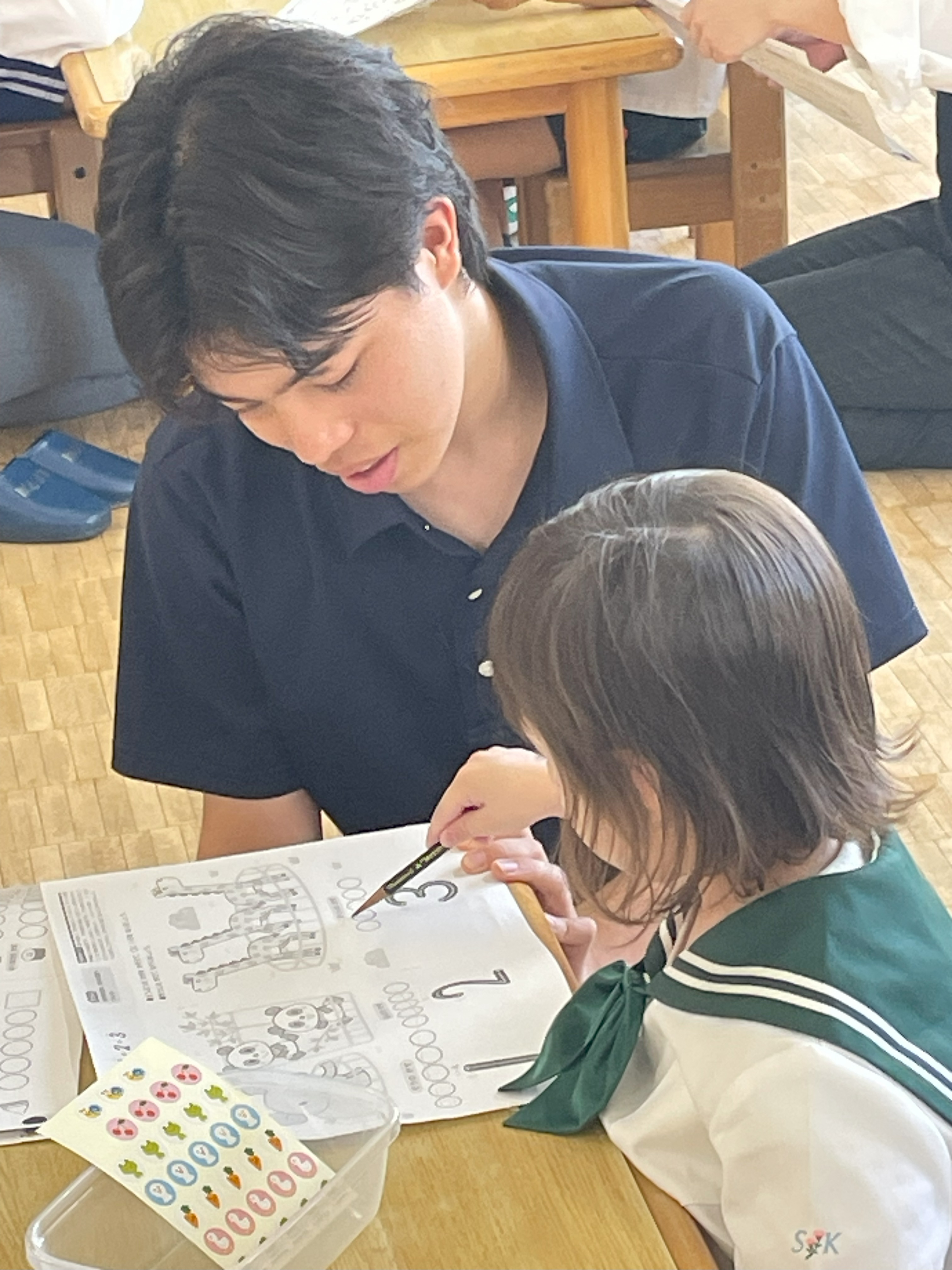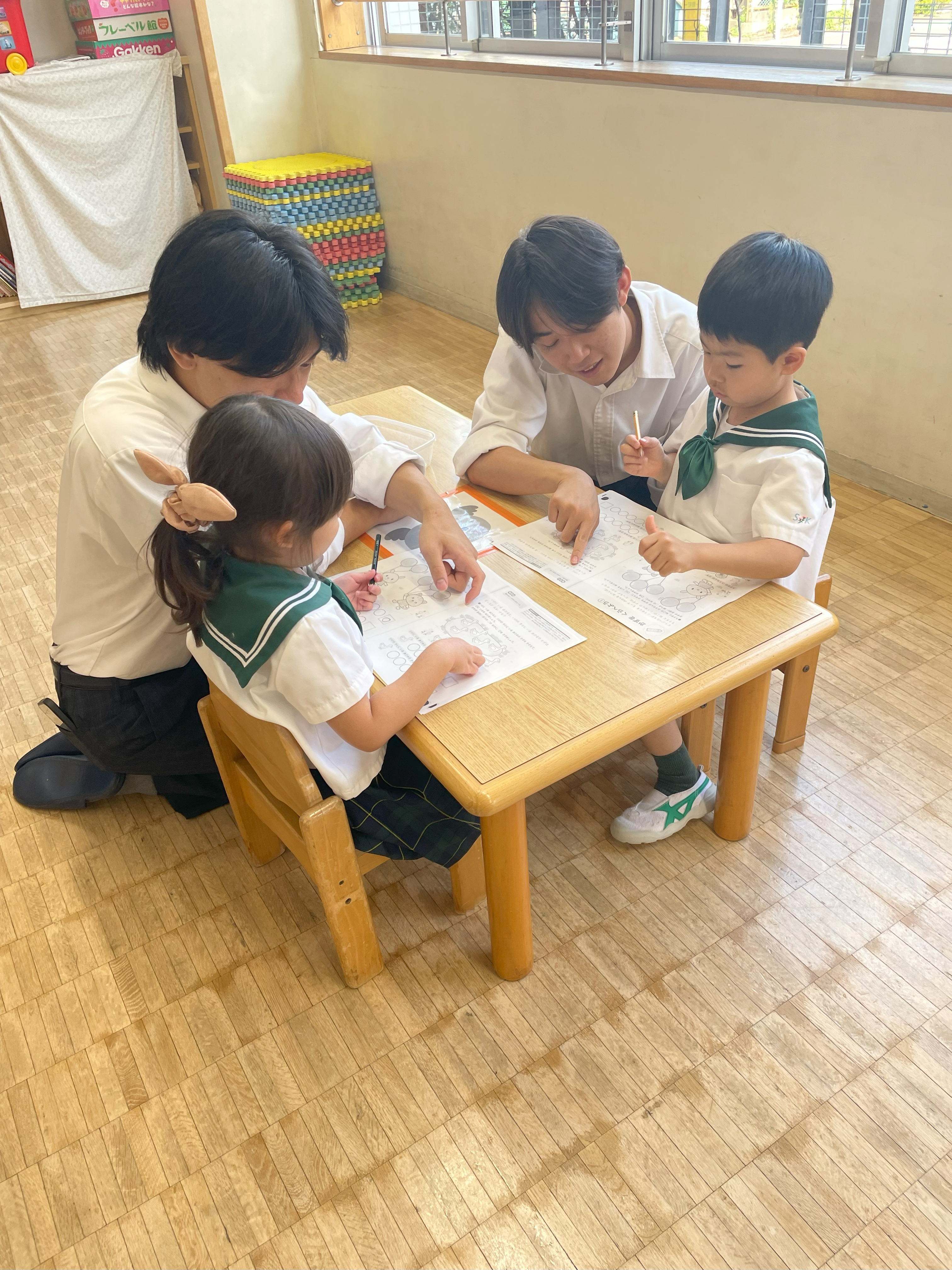 幼稚園生と高校生の勉強を通じての交流「はんあいじゅく」。今年度3回目がおこなわれました。