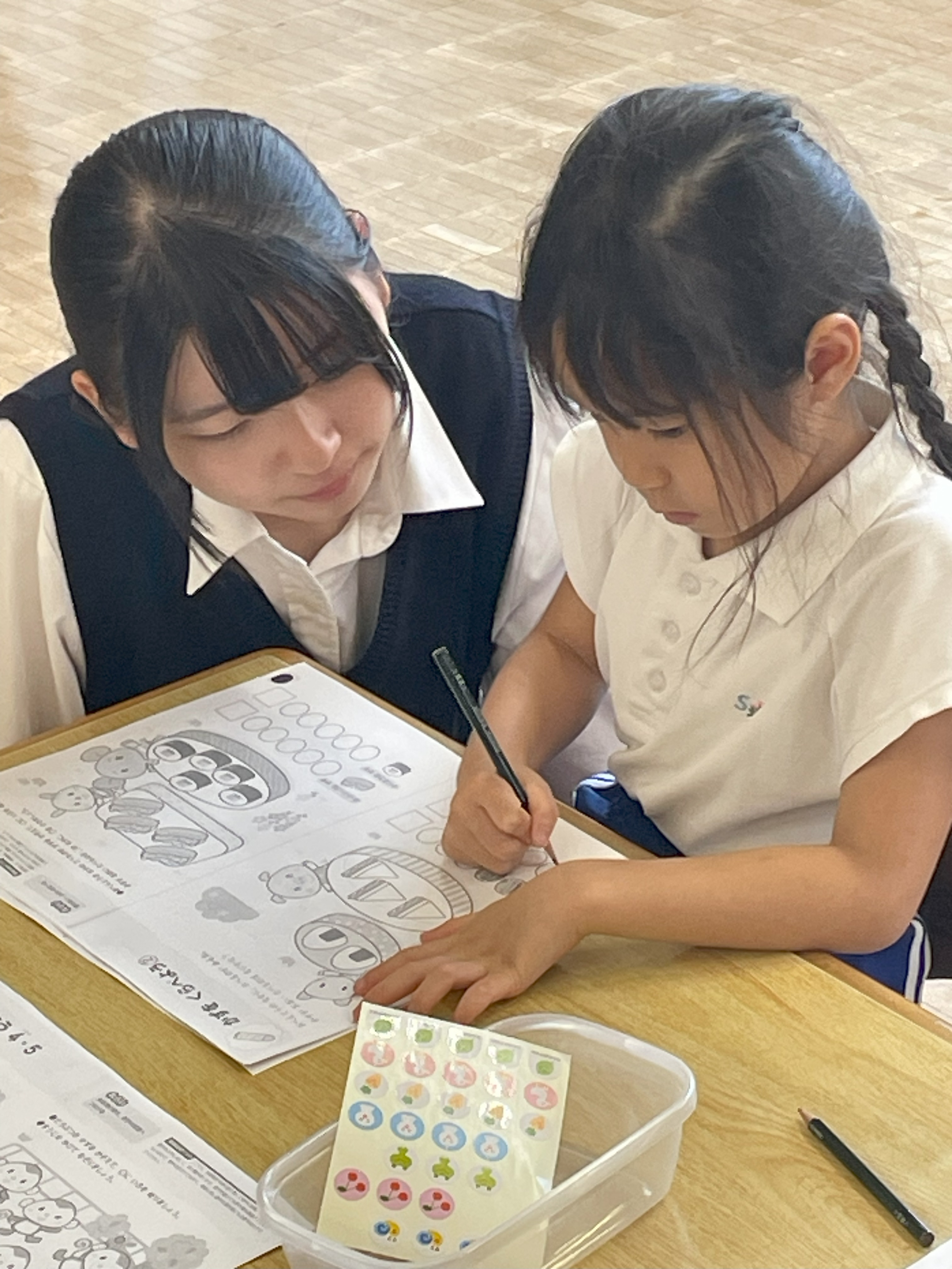 幼稚園生と高校生の勉強を通じての交流「はんあいじゅく」。今年度3回目がおこなわれました。