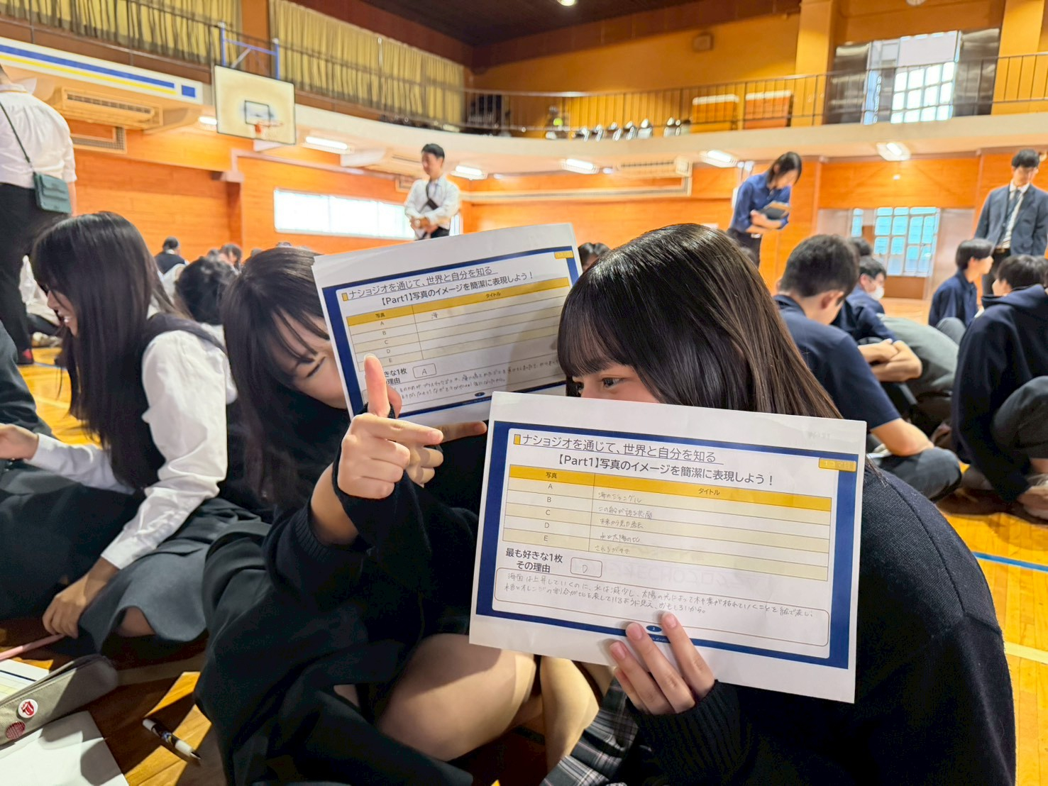 初日を迎えた本日は、ナショナル ジオグラフィック社戸田様より厳選された写真を提示していただき、本校の生徒たちは写真を「見る」だけでなく、写真を見て、自分自身の興味関心を再発見したうえで、他者の興味があるポイントを聞いてみて、自分自身の視点を広げてみました。