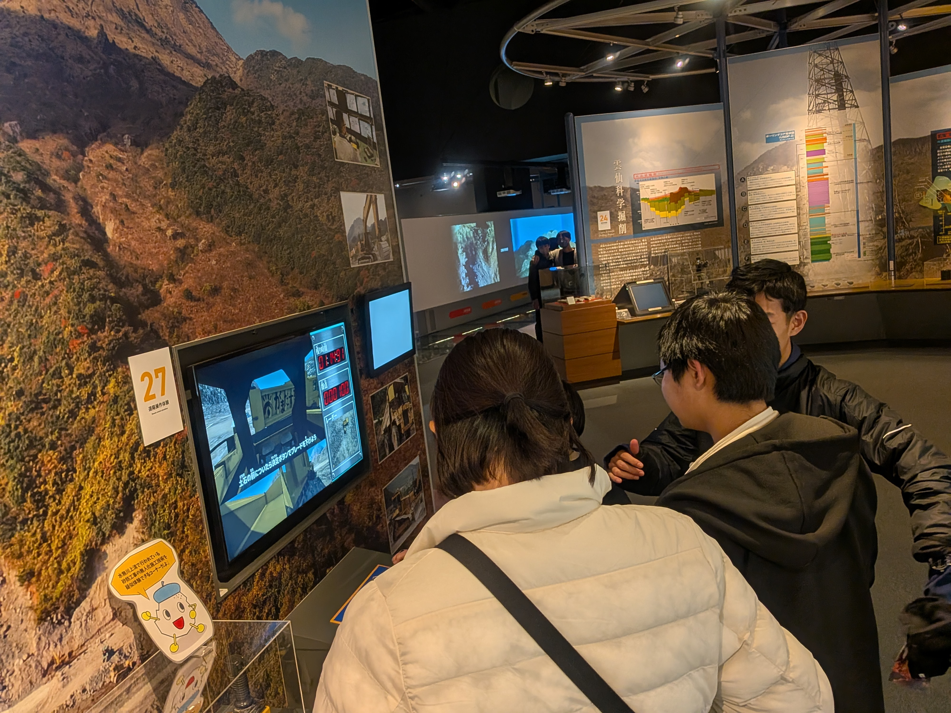 ガイドさん同行のもと、雲仙噴火の様子、どのような復興を遂げたのかを、館内の機器を使いながら疑似体験しました。