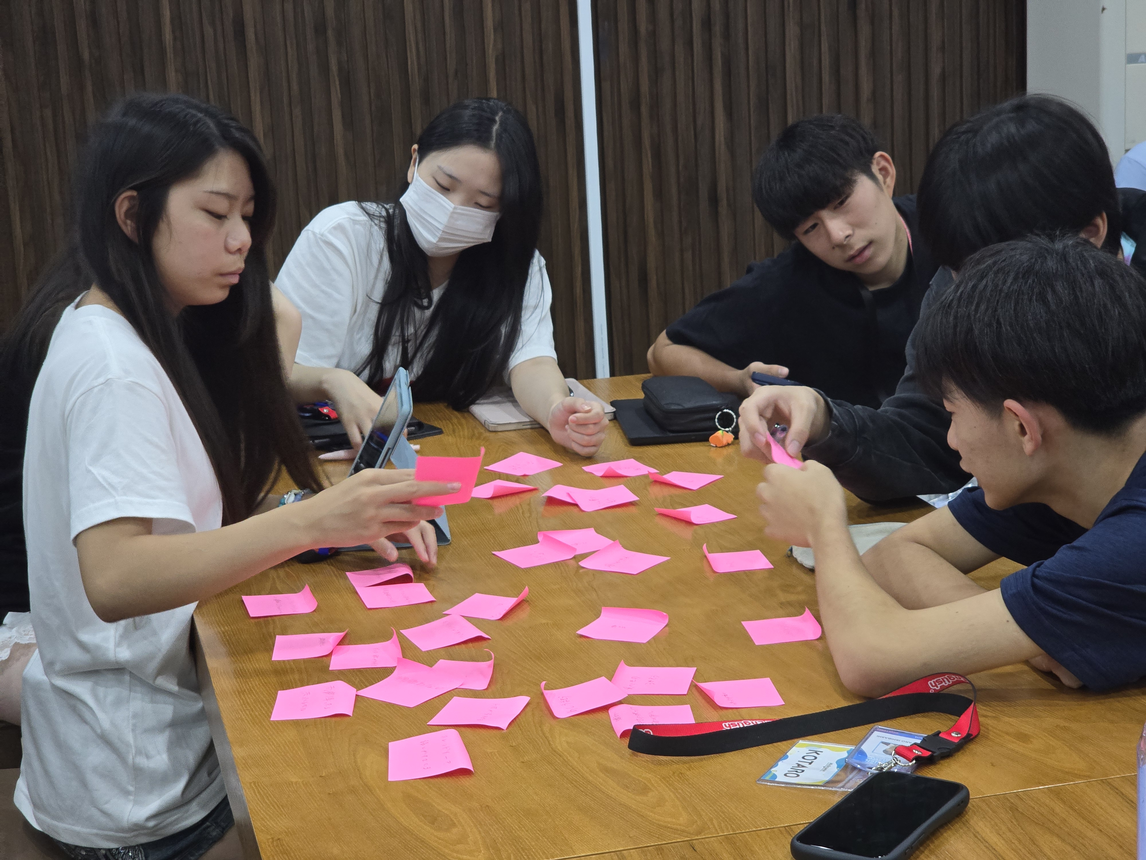 そして、それをグループで共有し話し合いながら、自分でも気が付かなかった要素を掘り出し付箋に書き足していきます。