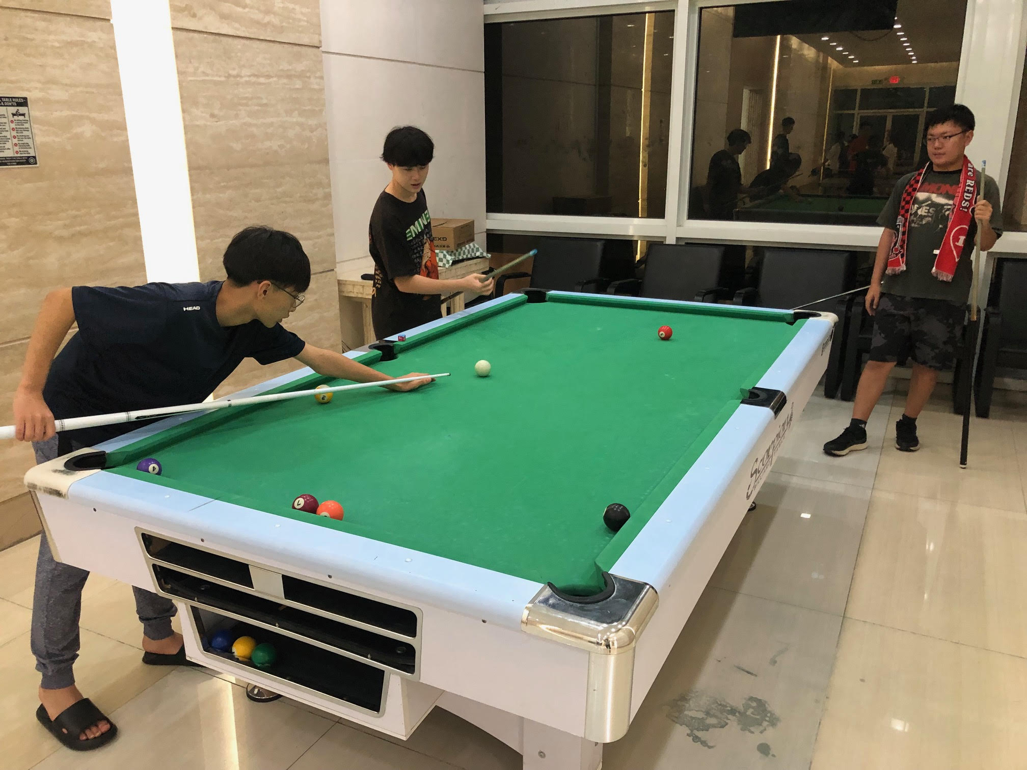 ジムで体を動かしたり、卓球やビリヤードで笑いあったり、思い思いの過ごし方で、心身のリフレッシュをはかっていました。