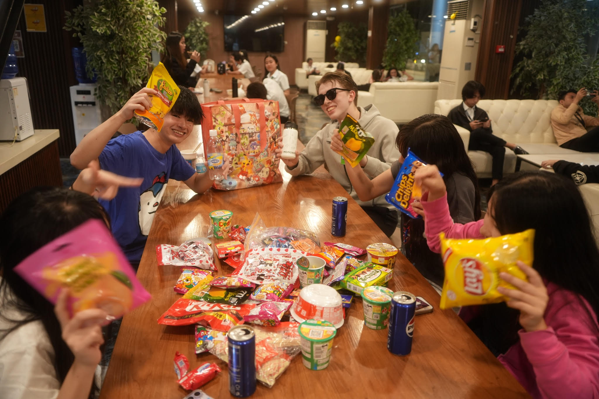 研修が始まった頃は、日本から持ってきた食べ慣れたお菓子に手が伸びていた生徒たち。