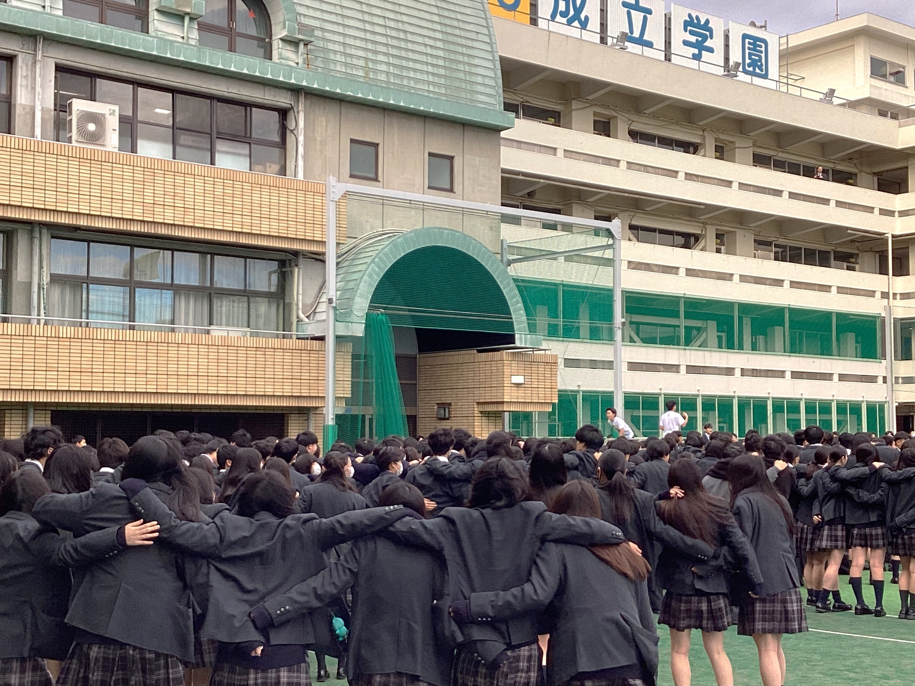 最後にみんなで肩を組んで「愛してるぜ、We're 成立」を歌って応援しました!