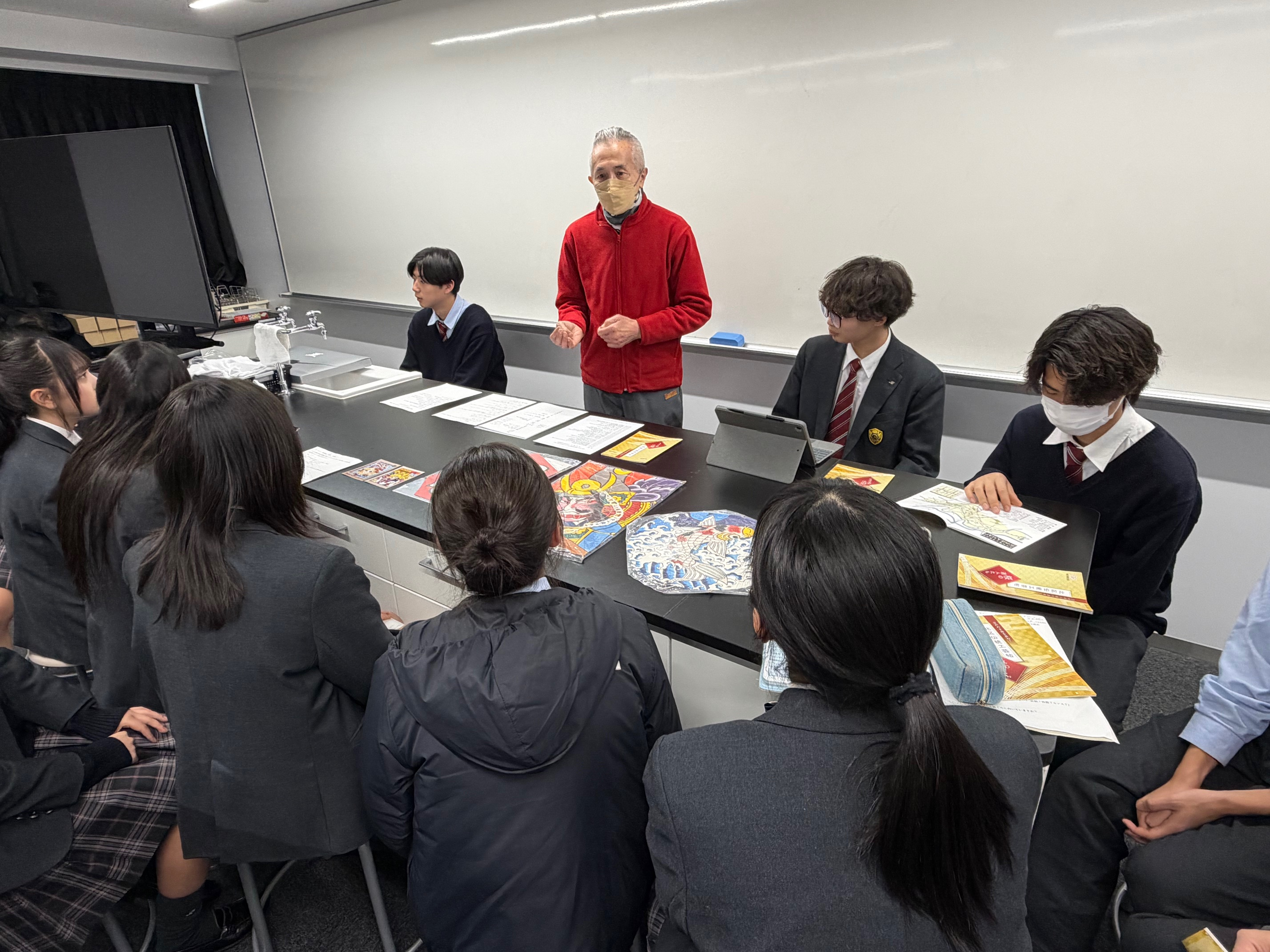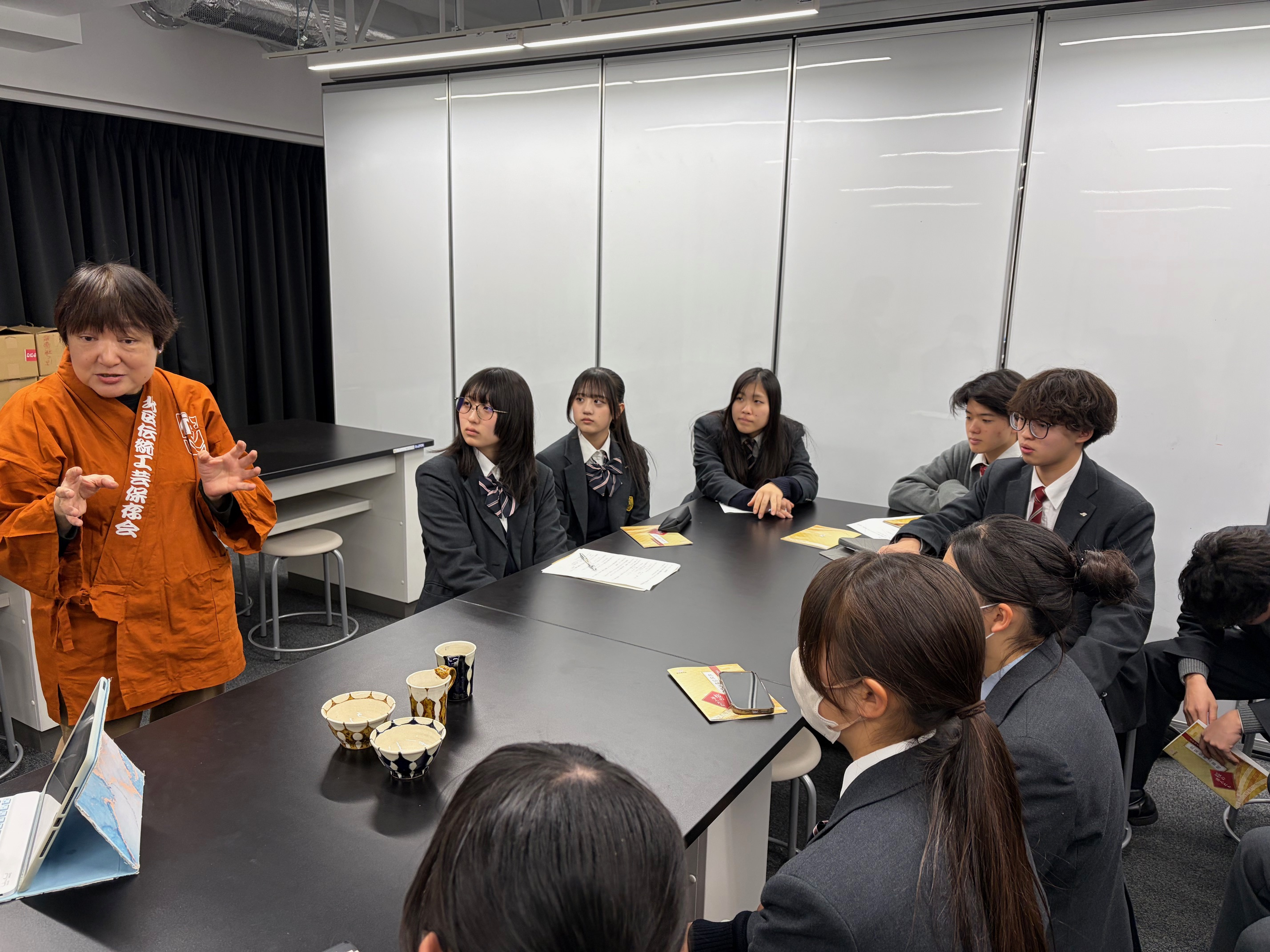 プログラムでは、それぞれの工芸の歴史や技法についてお話を伺うとともに、生徒たちによるインタビューを実施。