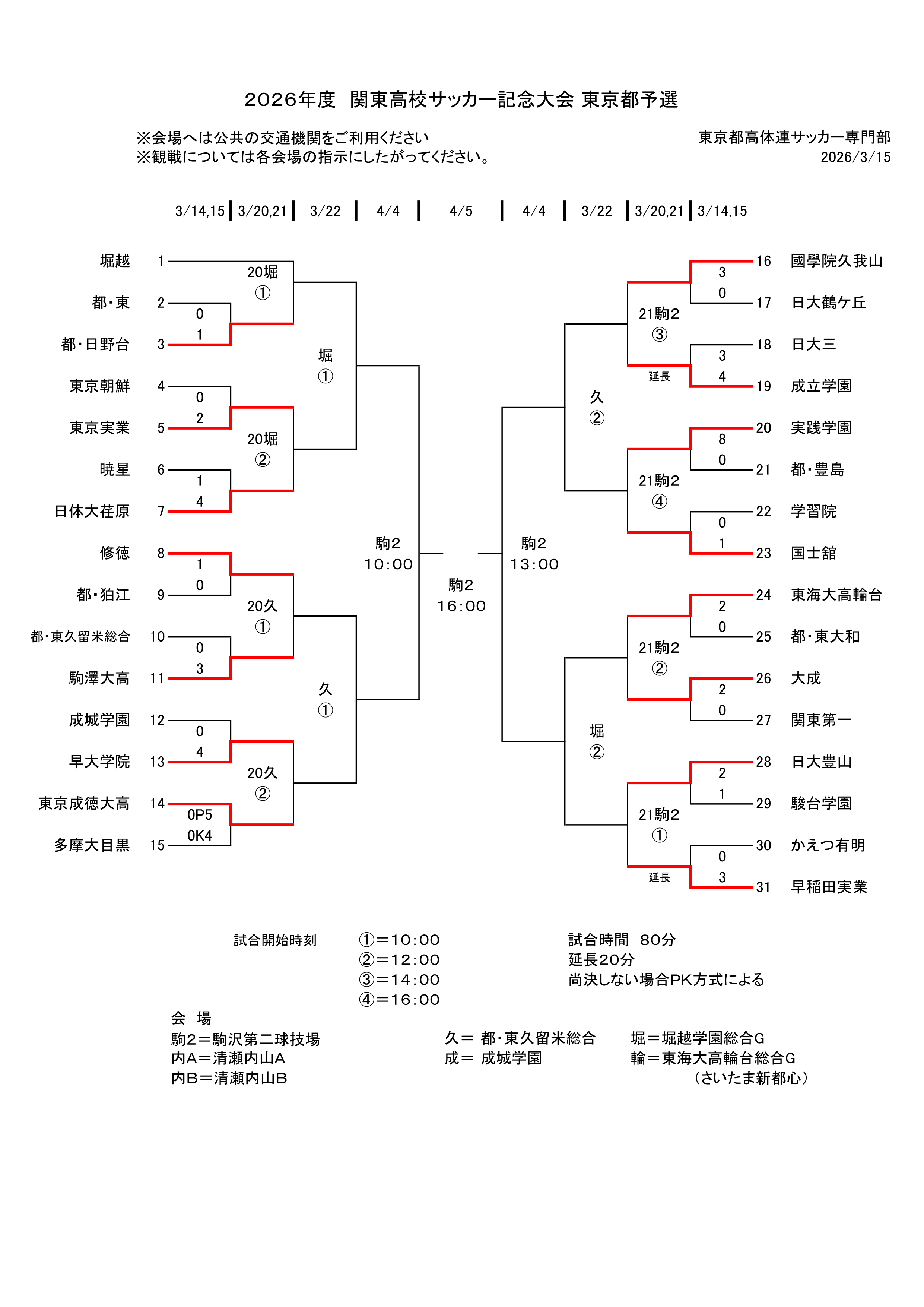 2026.03.14 男子サッカー 男子サッカー部 関東大会(記念大会)1回戦 「2026年度 関東高校サッカー記念大会」1回戦 成立学園 4 0-13-2延長1-00-0 3 日大三 得点者:川崎×2、米津×2 次戦 関東高校サッカー記念大会東京都予選2回戦 対戦相手 國學院久我山 日時 3月21日(土)14:00キックオフ 会場 駒沢第二球技場 「東京都高等学校体育連盟サッカー専門部」はこちらからご覧いただけます。 一覧へ戻る